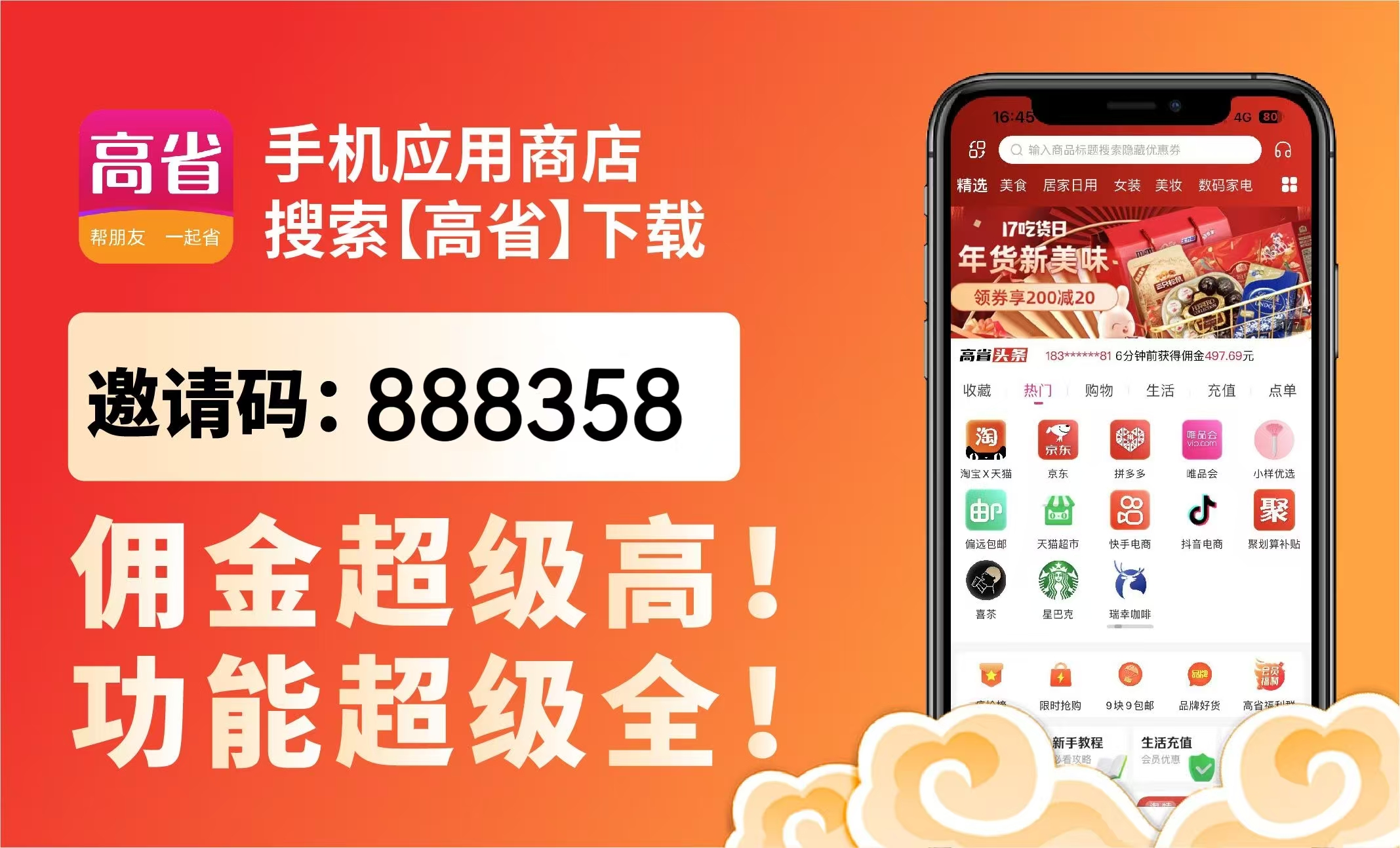 1. 邀请码888358:注册直升最高级,高利润商品佣金全拿