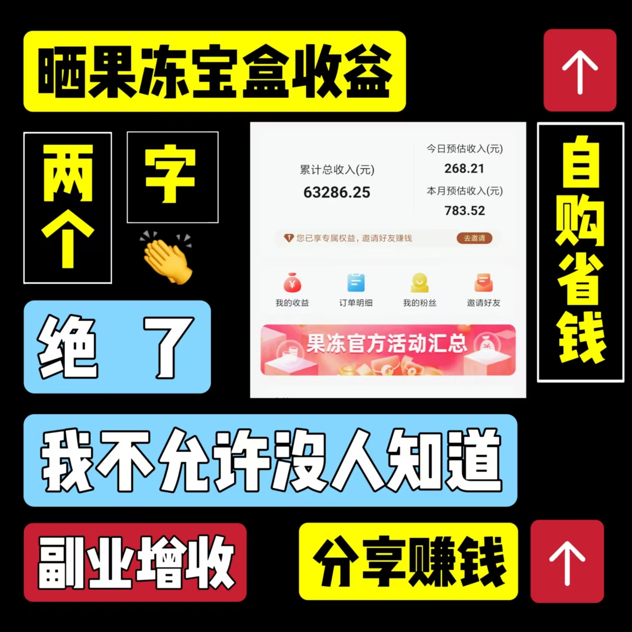返利权益主要分为三大类,覆盖各类用户需求:一是自购返利,用户通过果冻宝盒领取隐藏券后下单,返利比例通常为商品金额的5%-30%,部分爆款商品、小众商品返利比例可高达50%以上,填写邀请码888358的用户,自购返利比例额外上浮5%-10%,相当于同样的消费,能赚更多返利;二是分享佣金,用户将平台内的优惠商品链接、优惠券分享至微信、朋友圈、社群等社交平台,他人通过该链接下单,分享者可获得该笔订单返利的80%-100%,无需囤货、无需发货、无需售后,真正实现“零成本带货”;三是团队收益,用户邀请好友注册成为果冻宝盒用户(填写自己的邀请码即可绑定上下级关系),直属好友消费可获得其返利的20%-35%,间接好友消费可获得其返利的5%-15%,团队规模越大、层级越深,收益倍增效应越显著,实现“良性躺赚”。